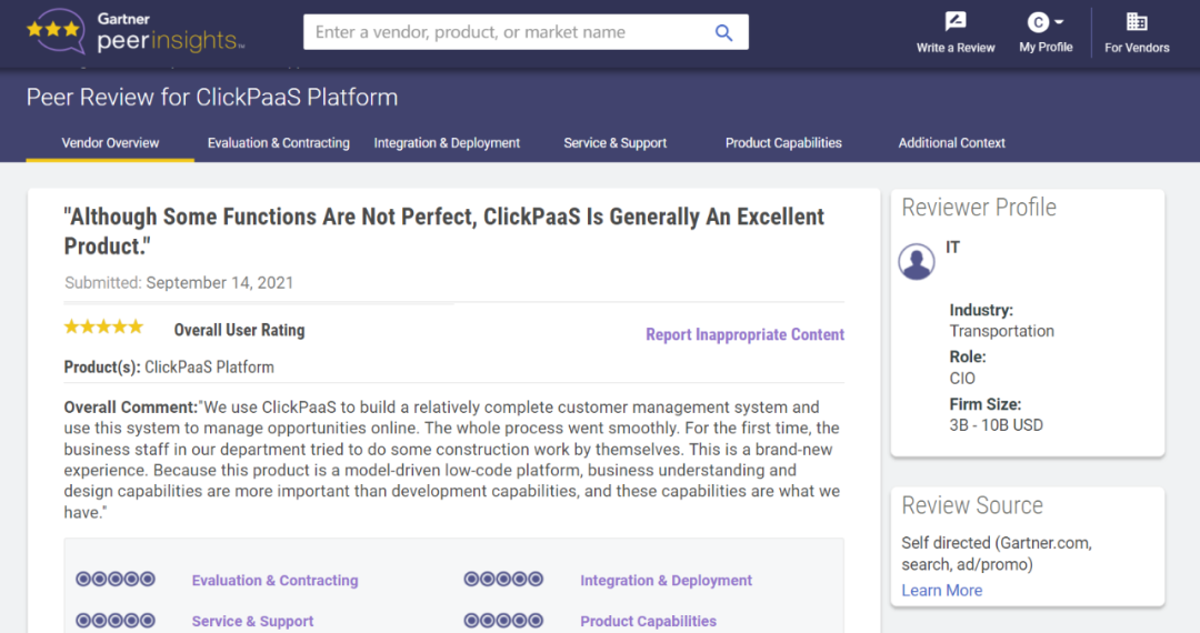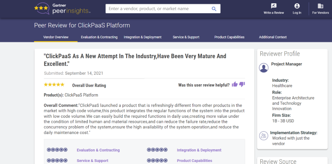 Tips:::【Peer Insights】——用户对企业IT产品和服务发布真实评价的平台。。。。目前已有355个市场,,255,000条经过验证的评价。。。。每一条评价Gartner会针对参评企业营收规模及参评人员信息做验证、、、、评价内容做多维核实。。。。